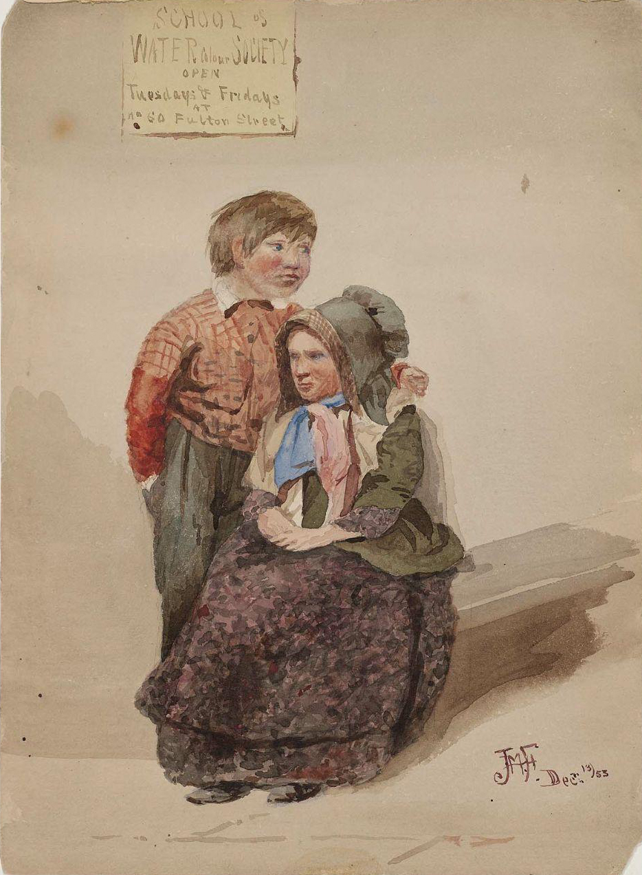Falconer, John Mackie - Couple Seen Below A Poster For The School Of The Watercolor Society